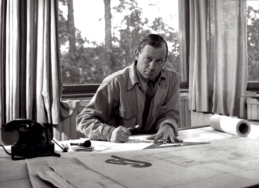 - Alvar Aalto en su estudio, 1945 © Alvar Aalto Estate / Alvar Aalto Museum. Foto: Eino Mäkinen