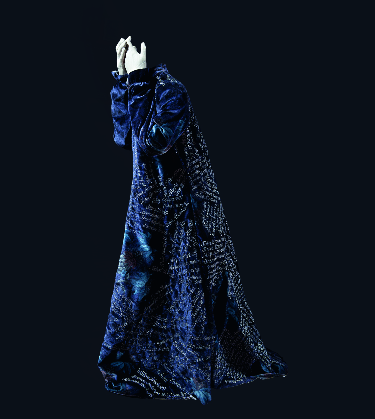 Especialmente bello resulta también su Manto de cera y coral suspendido del techo y la enredadera con flores recogidas en diversos países que da lugar a All together now.