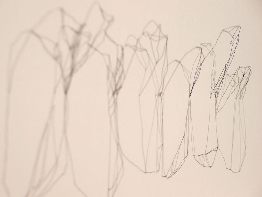 Si las miramos en fotografías con fondo blanco y no en el cuerpo a cuerpo, las esculturas de Cristina Almodóvar pueden confundirse con dibujos, porque su germen es la línea, que parece haber escapado del soporte para tomar cuerpo. Y a veces ha escapado literalmente de él.