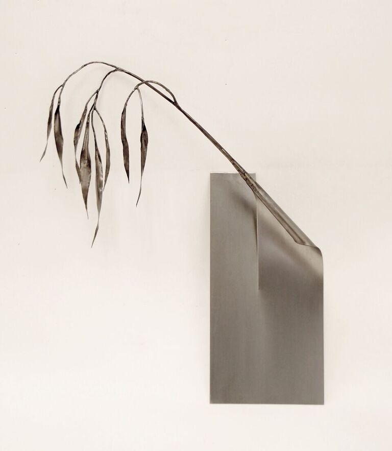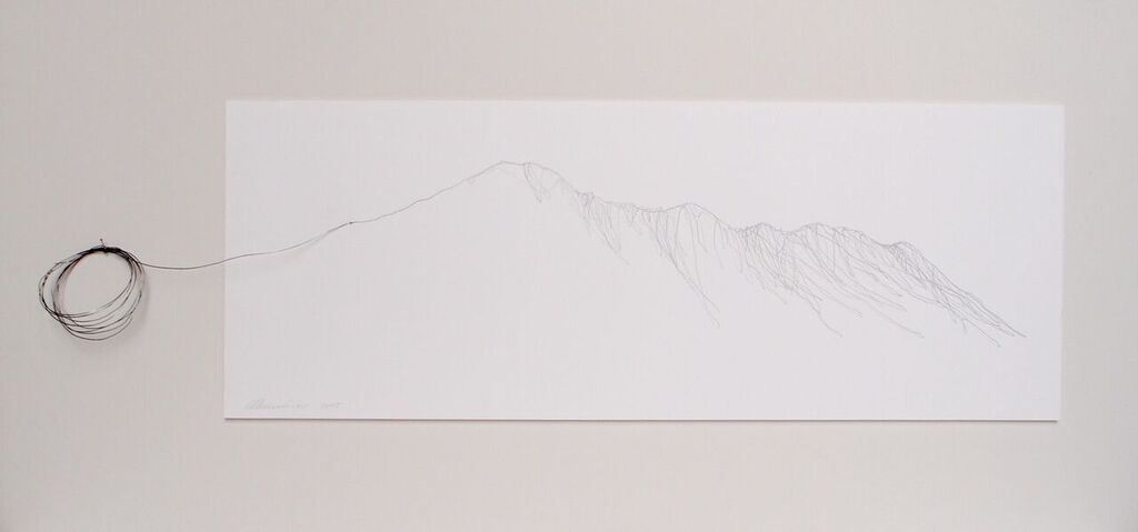 Hasta el próximo 7 de mayo, esta artista madrileña presenta en la APGallery de Martín Muñoz de Ayllón (Riaza, Segovia) una veintena de sus trabajos recientes bajo el título de “Transformaciones platónicas”. Se trata de obras elaboradas con materiales extraordinariamente simples, como el hierro, la tinta, el alambre y el papel, que, al mostrarse en el interior de esta galería abierta al paisaje circundante, y en el propio prado que la rodea, proponen una reflexión sobre lo volátil e inconsistente de la apariencia momentánea de las cosas y sobre la cercanía y las distancias posibles entre los medios del dibujo y la escultura y entre los binomios de materia e imagen, realidades y apariencias. El hierro también adquiere en sus piezas una naturaleza dual, a medio camino entre lo orgánico y lo industrial.