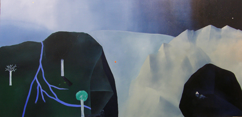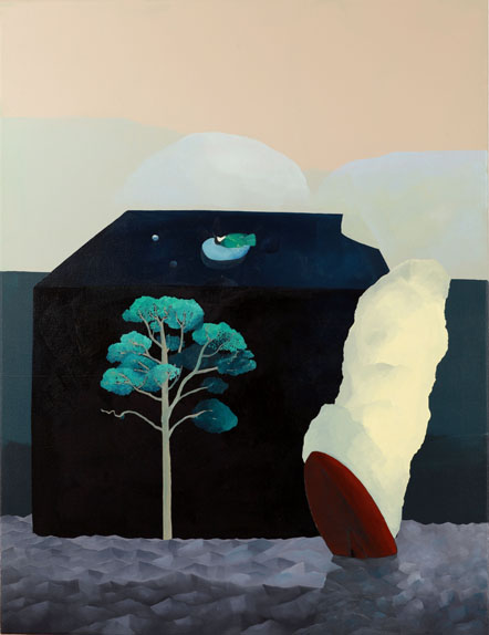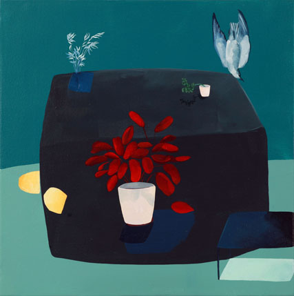 Entre la abstracción y la figuración, sus obras nos ofrecen paisajes aparentemente serenos, poblados por personajes o animales que desprenden ternura. Nada visible los amenaza, pero contemplando las pinturas más a fondo encontramos inestabilidad, peligro latente, una inquietud difícil de definir. Los planos se articulan en superficies de colores potentes que parecen fundirse unas con otras sin llegar a perder su independencia, precaria, tanto como la supuesta racionalidad de lo figurativo o la pureza de lo abstracto.