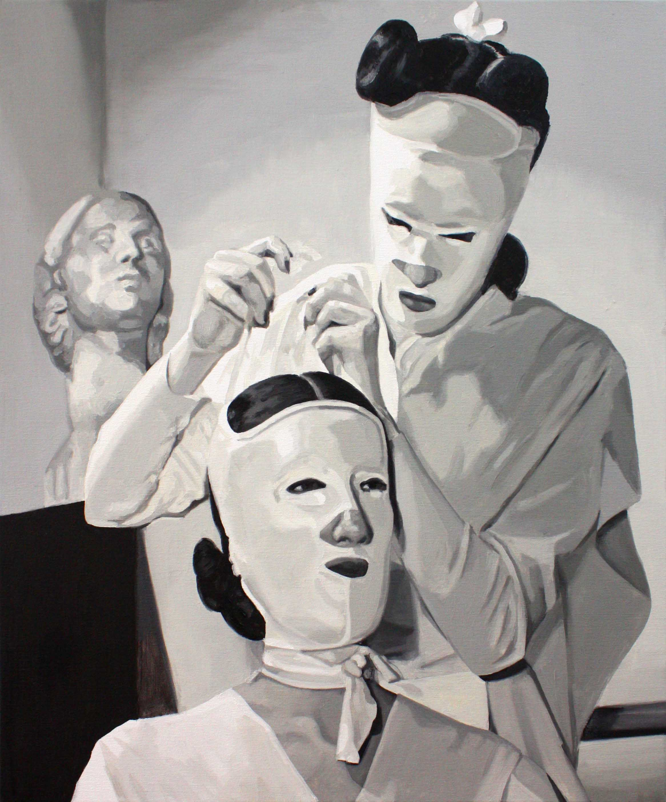 Como os contábamos, le interesan a Cristina las opciones de esta disciplina para explorar las posibles vigencias actuales de las fotografías de años y décadas pasadas y la conexión de éstas con los temas que más le interesan: Mi principal campo de exploración es la pintura como medio en sí, y su capacidad para dotar de nuevos significados a imágenes de origen fotográfico. Trabajo seleccionando fotografías de distintas épocas y procedencias que tengan algo que me interese destacar, tanto por temática como por sus valores estéticos. Los conceptos de memoria, representación y control social del cuerpo (especialmente de la mujer) son recurrentes en mi obra.