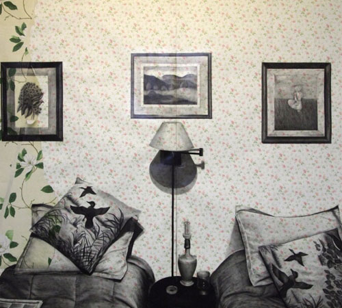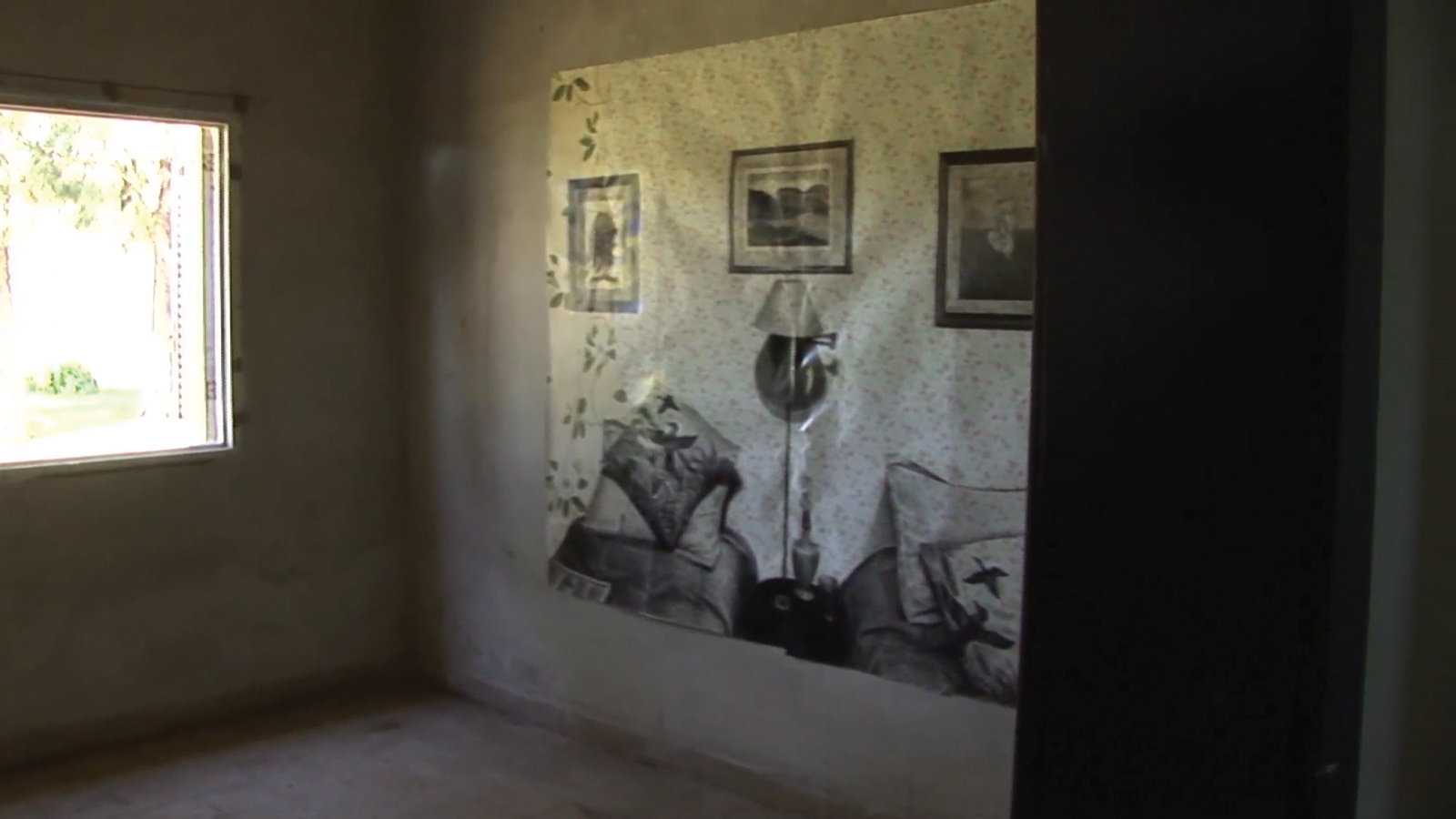 Gabriela dio vida al lugar, dejó entrar el aire en él y dispuso en sus paredes dibujos que representaban, con intención reparadora y resultados evocadores, muebles y objetos. La madrileña nos cuenta que fue una intervención efímera sobre los muros desnudos y acribillados, en un intento imposible por devolverle al lugar cierta calidez y un sentido de hogar.