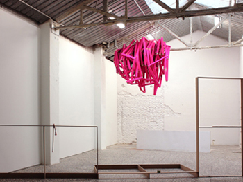 También ha trabajado en ocasiones, como en su última y reciente muestra en Formato Cómodo, con superficies craqueladas o rajadas, abiertas, rotas al torcerse, en el que es para el artista un acto de liberación de la pintura, del plano, y con motivo de la colectiva “Ocho cuestiones espacialmente extraordinarias”, en el espacio de Promoción del Arte en Tabacalera, desarrolló el concepto de obra site specific, en el que está muy interesado.