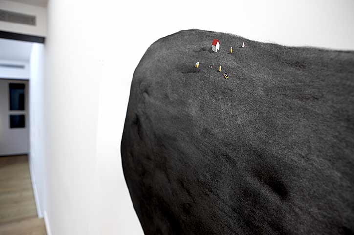 Algunas veces estas piezas, de aire onírico y siempre site-specific, rozan lo macabro desde el optimismo, nos trasladan a un fin del mundo sin excesiva carga catastrófica asociada.