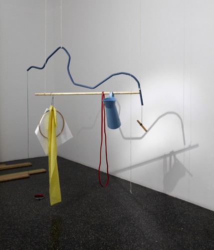 Lo lúdico y lo teatral son esenciales en esta exhibición, titulada “Limbs describe curves”. En el caso de los bailarines, sus cuerpos, a través del movimiento convertido en ejercicio mecánico, describen espacios; los objetos, separados de ellos mediante un telón, se dirigen al espectador, a modo de coro; y el uso de sombras y luces parece animar siluetas suspendidas. La tramoya escenográfica queda al descubierto y compone, en sí misma, el eje de esta obra, que introduce en un espacio expositivo (cubo blanco, aséptico) el espacio teatral (tradicionalmente asociado al cubo negro), y, por tanto, la ficción.