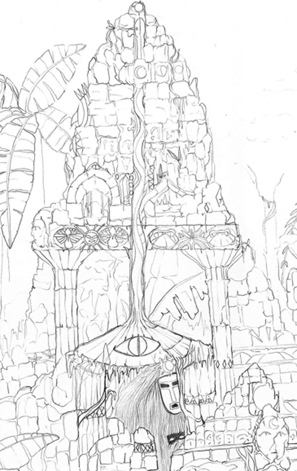 El proyecto presenta tres momentos claves: El Sueño de la Mamachonga, en el que la Mamachonga, la serpiente gigante, sueña la selva que acontece y que se extiende por la sala; La gran Revelación, en la que una figura autorrepresentativa recorre dicha selva hasta encontrar una tribu, y La danza del sol, en la que la misma figura halla una ciudad escondida en la selva.