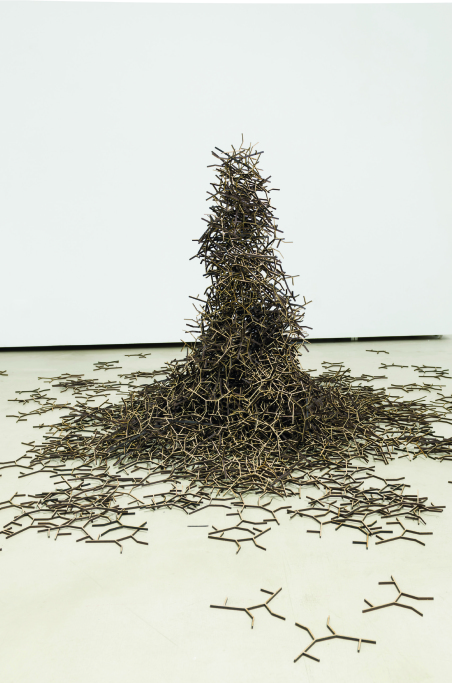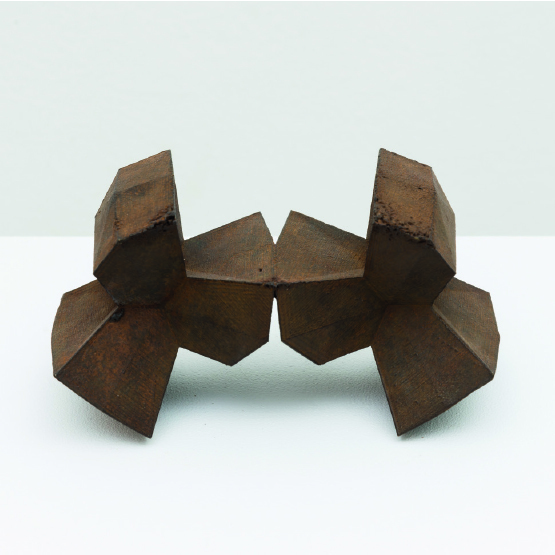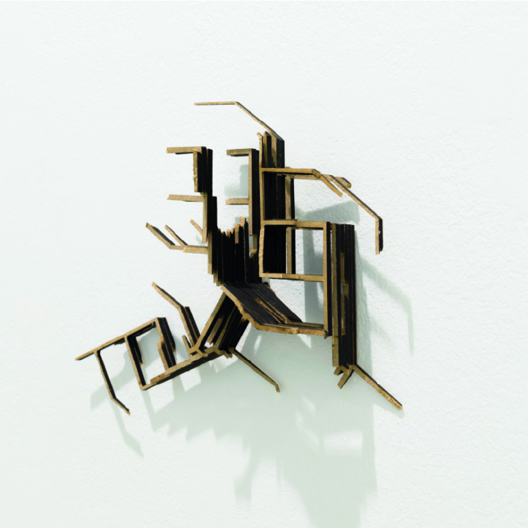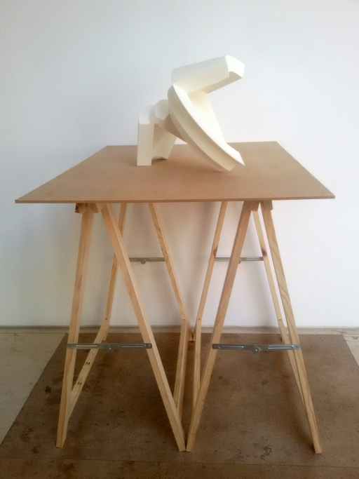 Así, el desarrollo escultórico se centra en la transición entre lo digital y lo físico. Esta transición hace aflorar una serie de posibles evoluciones del objeto primario, del cual partimos para crear un grupo de piezas “bastardas” que se construyen a partir de las diferentes posibilidades constructivas que surgen de esta manipulación y que permanecen ocultas dentro de la estructura del estado primigenio. En contra del objeto originario, cuya forma se vincula a la dependencia hacia ciertas necesidades y usos, las nuevas formas nacen libres de todo contexto, toda atadura social, política o económica, buscando una nueva naturaleza estética e instalativa dentro de un entorno artístico.