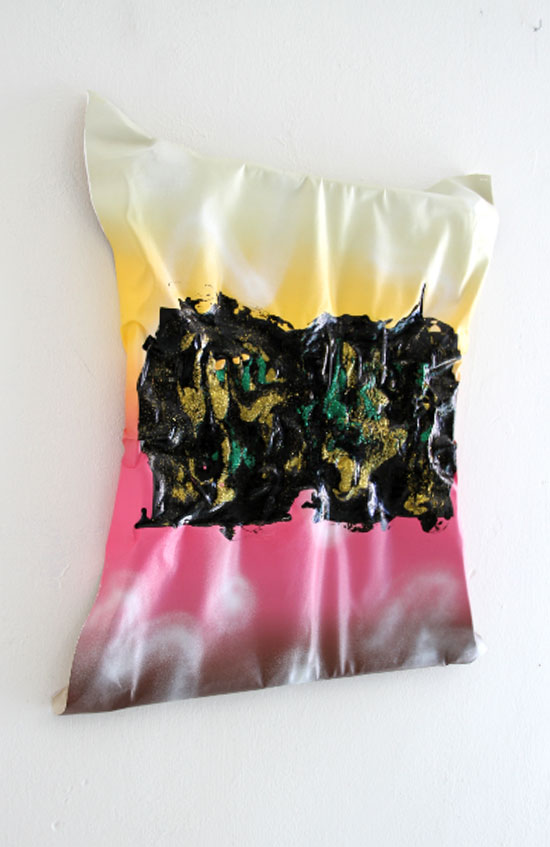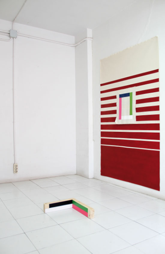 Sin determinar previamente los resultados de sus procesos, ha creado en estos cuatro años cuadros, objetos, instalaciones y dibujos basados en instrumentos que ella asocia a afecciones y que remiten a acciones banales: Fragmentos de materiales encontrados y regalados y de experiencias y espacios vividos de manera repetida que se singularizan en el contexto del taller, y en acciones comunes como desayunar y ensimismarse, correr tres o cuatro veces por semana y sudar. Ir corriendo o estar trabajando en la mesa del estudio o en el espacio del taller y que algo pase entre nosotros y una etiqueta publicitaria de almohadas, una bolsa rota, un trozo de madera, un papel arrugado, un fragmento de gomaespuma, un viejo regalo o un tablero de juego que alguien ha tirado al suelo. Existencias vulnerables que afectan y que posibilitan seguir haciendo, que dan pie a nueva acción. Tensiones cotidianas que producen una suspensión vital en la que se configuran constelaciones entre las cosas extrañadas y ciertas significaciones profundas.