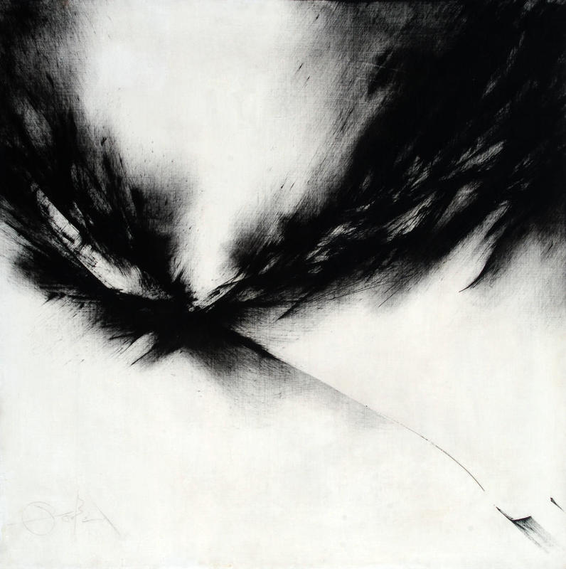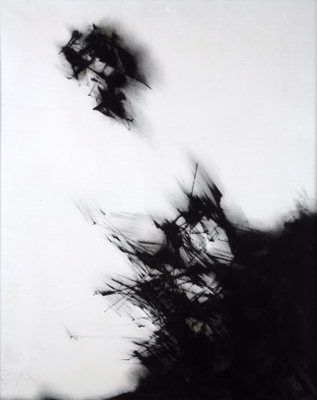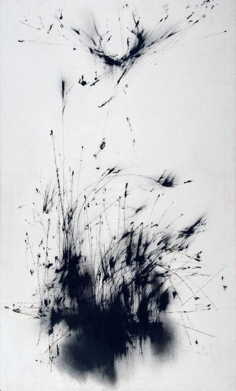A finales de los concuenta Zóbel dejó a un lado los pinceles para emplear jeringuillas de cristal en aras de la finura de las líneas y redujo sus colores al blanco y al negro