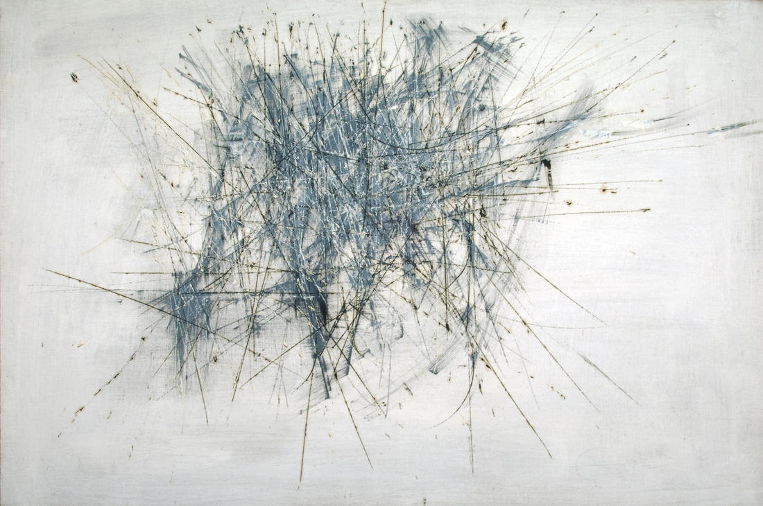 En esa etapa de finales de los cincuenta Zóbel había decidido tratar de reducir lo máximo posible la variedad de su escala cromática y también el grosor de los trazos, hasta el punto de que dejó a un lado los pinceles para emplear jeringuillas de cristal en aras de la finura de las líneas y redujo sus colores al blanco y al negro.