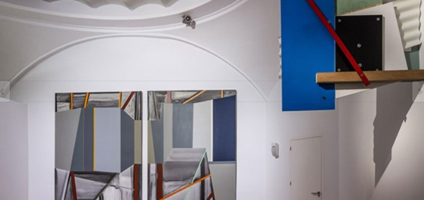 Además de estas instalaciones y esculturas, se exhiben en la Sala Verónicas tres piezas colgantes y algunas pinturas: un tríptico, un díptico y dos piezas individuales que hacen referencia también a la arquitectura y la geometría del espacio.