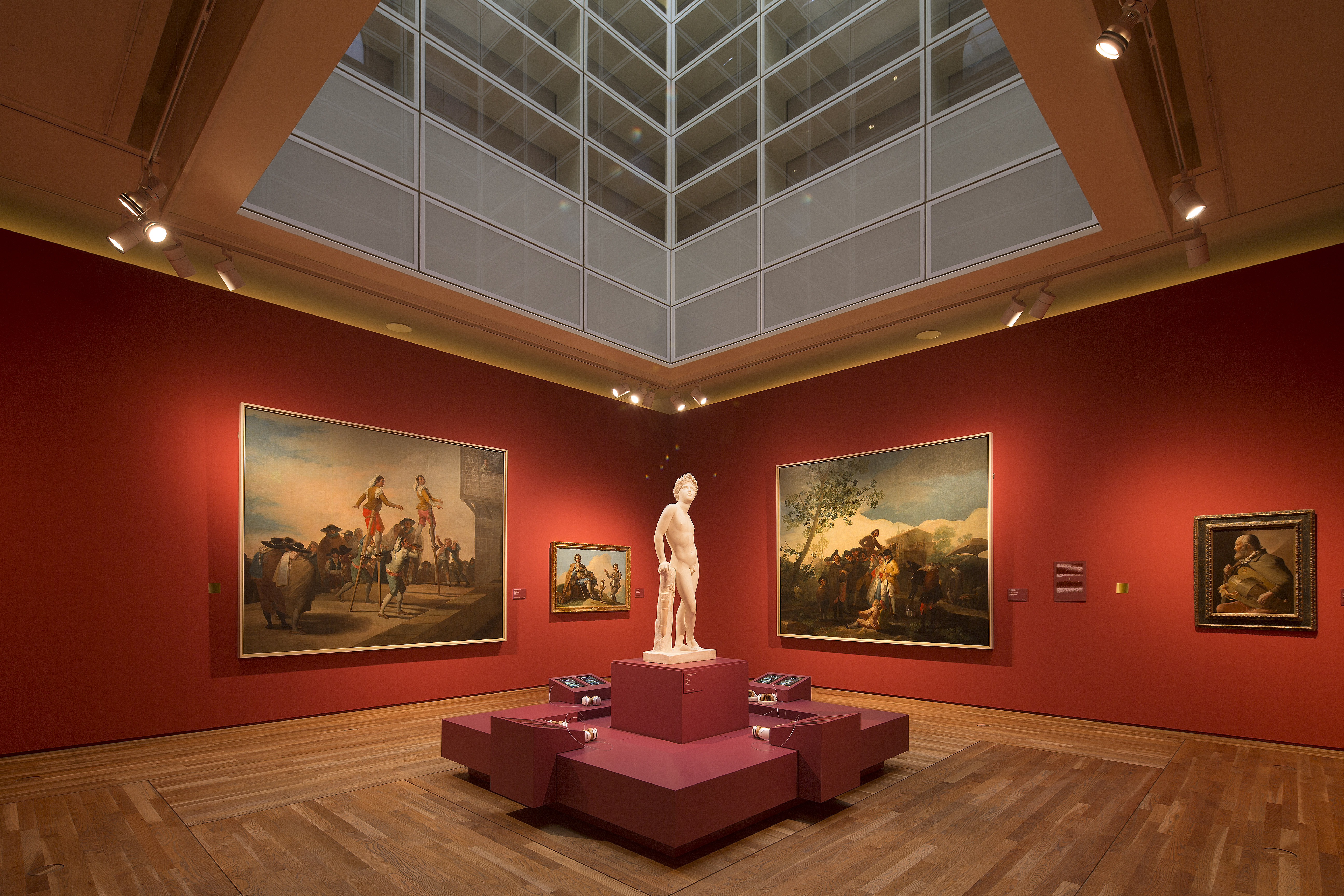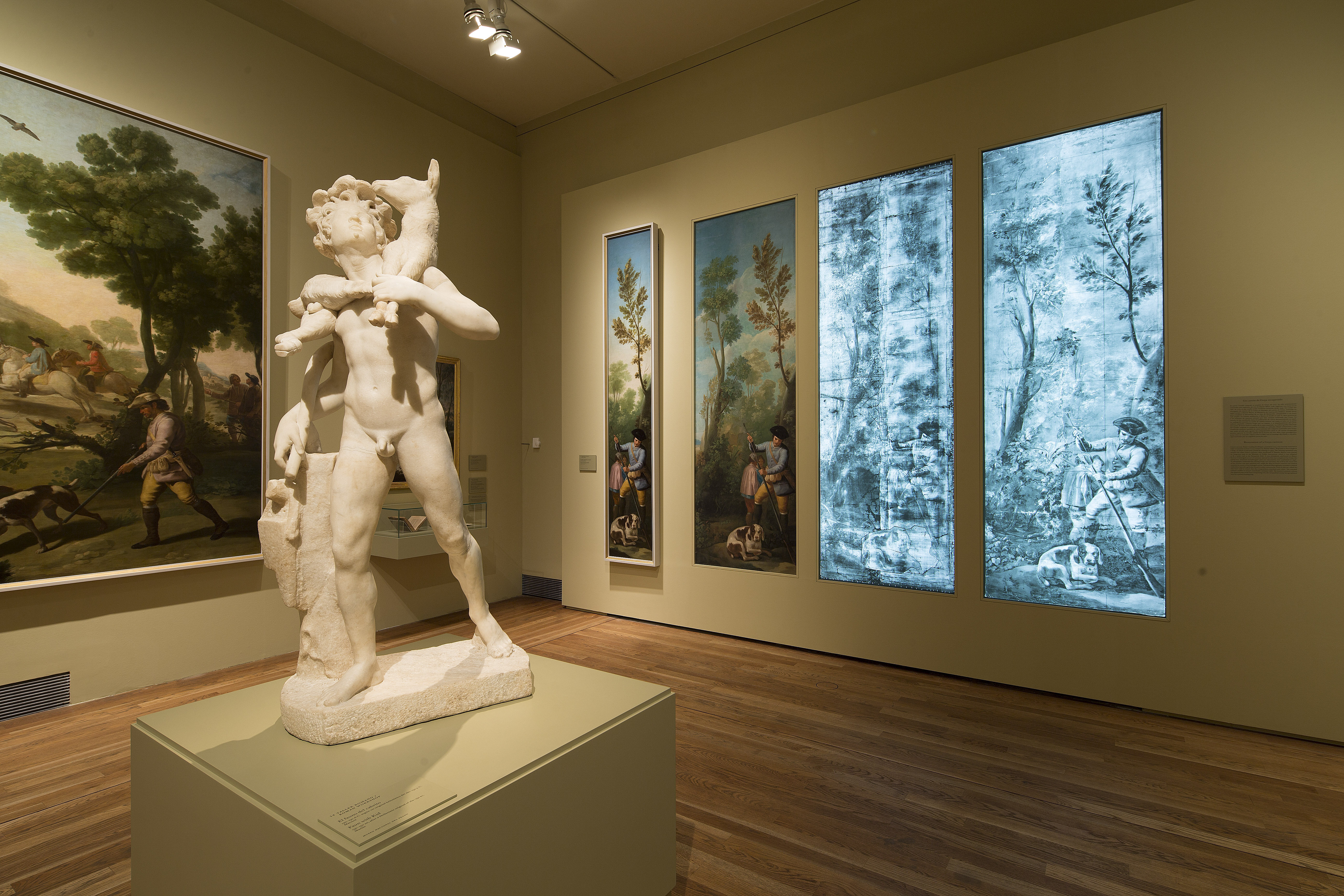 No se exhiben en el Prado todos los cartones (algunos de ellos forman parte de exposiciones en el Museum of Fine Arts Boston o en Barcelona), pero sí su núcleo fundamental, lo bastante representativo de la riqueza de sus composiciones y del cuidado que Goya imprimió a las representaciones de figuras humanas y animales y a sus expresiones, germen de su producción posterior en el caso de diversas series de estampas, dibujos y pinturas de gabinete.