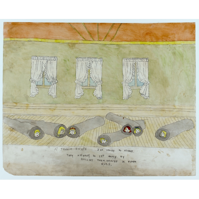 - Henry Darger. At Jennie Richie are rescued by Evans, 1910-1970 © Eric Emo / Musée d’Art Moderne / Roger-Viollet