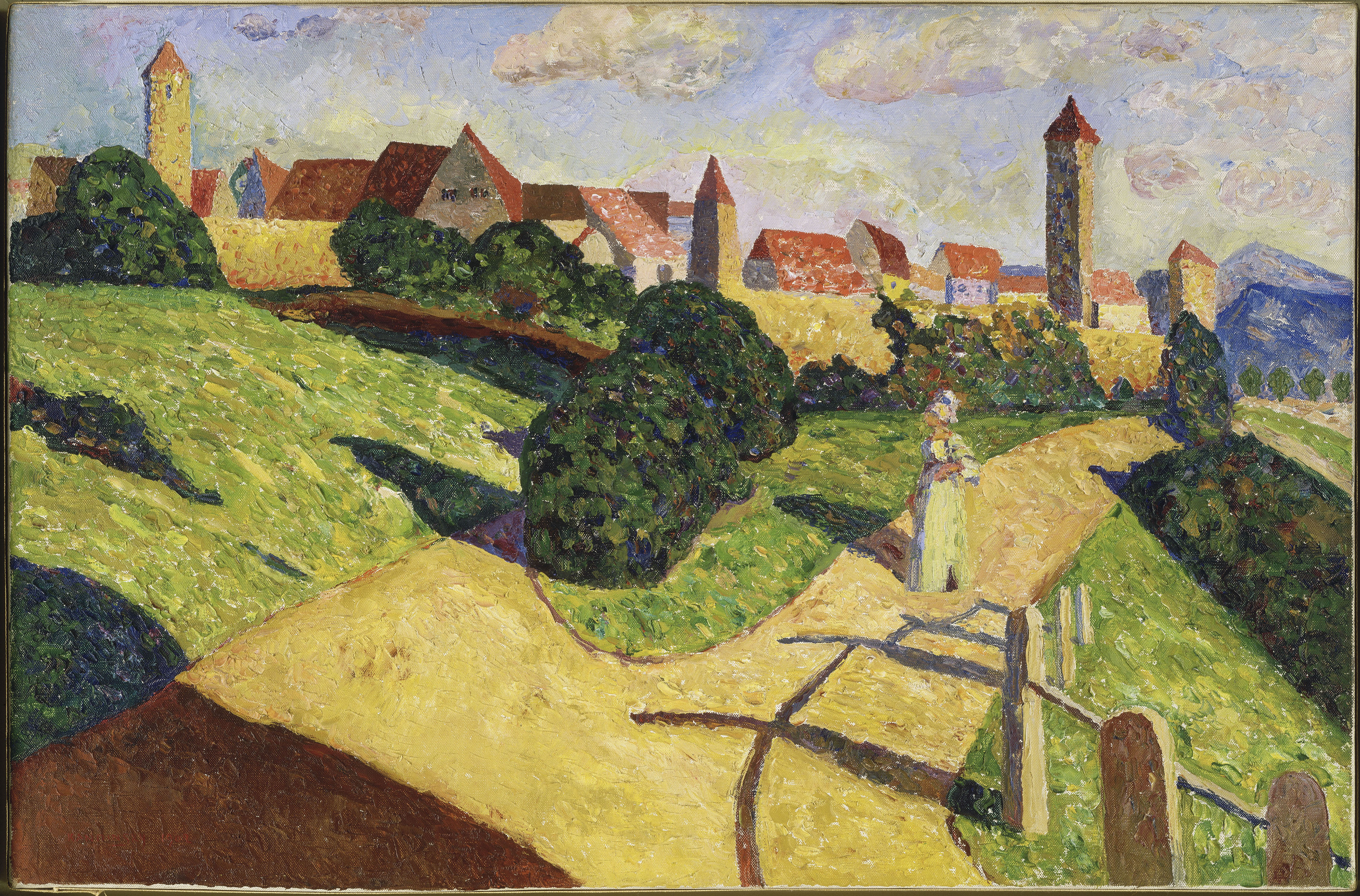 Kandinsky llevó a cabo allí encantadores paisajes de estilo tardoimpresionista y obras de colores brillantes inspiradas en la historia antigua del Imperio Ruso y en leyendas germánicas. Fue a partir de1908, y durante sus estancias veraniegas en Murnau, cuando se decidió a crear sus primeros trabajos planos de tonalidades antinaturalistas inspiradas por el Fauvismo. Ese camino le conduciría, como sus profundas investigaciones sobre el poder del color (a Kandinsky le gustaba llevar sus búsquedas hasta el fondo), a la abstracción, movimiento del que fue claramente pionero.