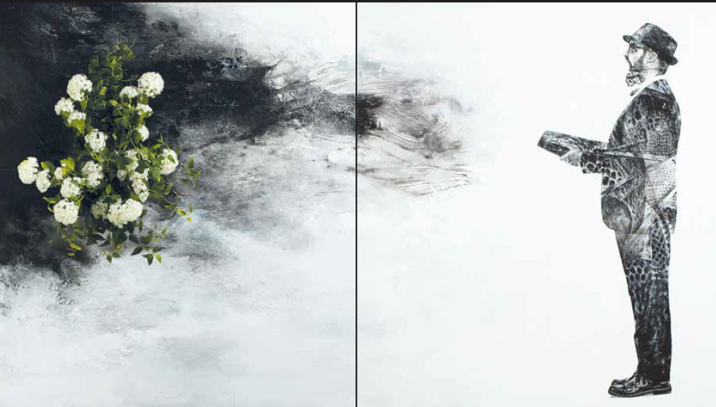 La muestra puede dividirse en cuatro fases o etapas que nos van guiando por ese recorrido emocional. En la primera de ellas, LOGOS, Javier sale a predicar, libro en mano, las virtudes de la razón a los animales, a los árboles y a los vegetales: Arropamos de palabras lo real para protegernos: adherimos piel a las vísceras de lo cotidiano.