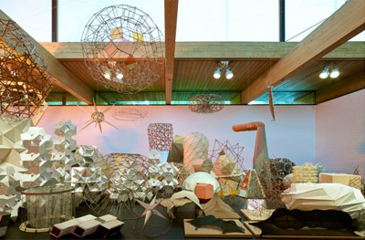 Por último, el tercer apartado de la exposición se dedica a Model room (2003), obra clave de Eliasson que ya estamos habituados a contemplar adaptada a distintos espacios museísticos. En esta ocasión incorpora cerca de 400 modelos geométricos utilizados en la composición de obras de arte por el artista junto al islandés Einar Thorsteinn, bocetos que en algunos casos han acabado desembocando en obras o que simplemente se quedaron en ideas. Se exhiben en el marco de un espacio de trabajo, un taller en el que podremos adentrarnos en los procesos creativos y de experimentación de Olafur, y se acompañan de libros sobre Eliasson, incluido Contact is content, una obra diseñada específicamente para esta exposición y que reúne fotos de paisajes realizadas en Islandia en los últimos treinta años.
