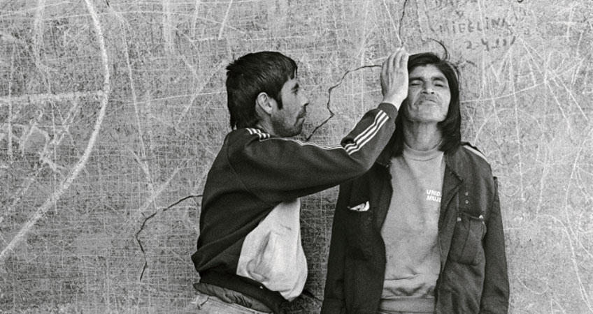 - Paz Errázuriz. Compadres, Santiago, de la serie Personas, 1987. Cortesía de la artista. © Paz Errazuriz