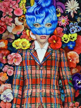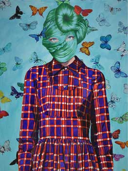 El año pasado se hizo con el premio BMW de Pintura por su Retrato nº51 y ahora la artista jienense Ángeles Agrela lleva a Yusto Giner sus irónicas obras, en formatos diversos, sobre la homogeneización creciente de nuestros gustos y aficiones y las falsedades propias de la vida social.