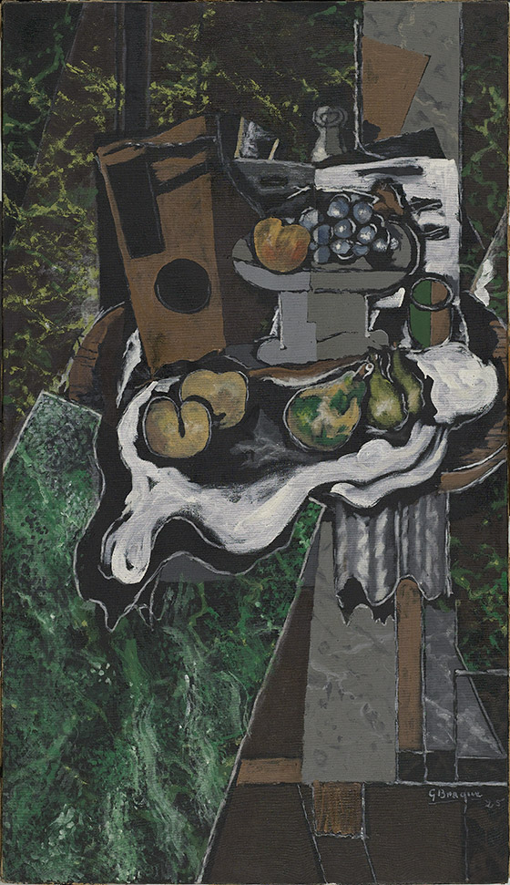 - Georges Braque. Frutas sobre mantel y frutero (Fruits sur une nappe et compotier), 1925