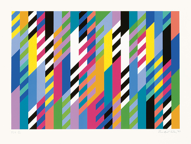 Ya desde los ochenta, esta pintora de Norwood comenzó a trabajar exclusivamente en color: en RA 2 (1981) y Silvered 2 (1981), trabajos ambos relacionados con su serie de pinturas de contornos egipcios, se sirvió de la serigrafía como medio para ampliar sus investigaciones sobre el color. En ambos grabados utilizó los mismos elementos: mismo número de rayas de idénticos colores trazadas en la parte inferior; sin embargo, varió sus secuencias, de modo que el efecto visual de ambas es opuesto al variar sus cualidades estructurales.