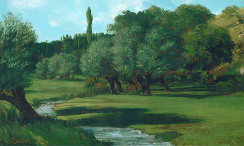 La muestra se inicia con los complejos autorretratos con los que Courbet debutó en la escena artística parisina, convertidos ya en iconos de la pintura francesa decimonónica, y continúa con los paisajes en los que plasmó su bucólica campiña natal: solitarios arroyos y manantiales y formaciones rocosas que revolucionaron la pintura de naturaleza en su época.