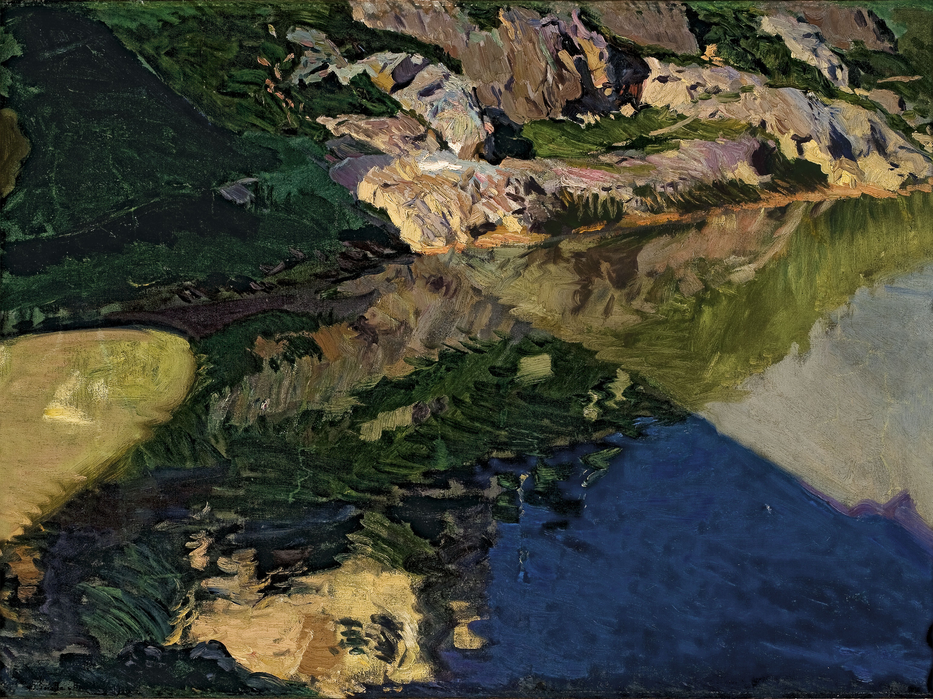 En El bote blanco. Jávea (1905), Sorolla pintó deslumbrado por la limpieza de las aguas del mar en esa localidad y su paleta se enriqueció con verdes, turquesas o anaranjados insólitos hasta entonces en su producción; en Sombra del Puente de Alcántara. Toledo (1906) destacan los encuadres para poner al espectador ante un espectáculo de pintura pura: eliminando el cielo y el horizonte, el lienzo se cubre de largas y rápidas pinceladas cargadas de color que nos sitúan ante una imagen casi abstracta de luces y reflejos y Playa de Valencia (1908) fue pintado durante el verano y forma parte de un conjunto de obras con el tema de las barcas y muchas figuras en la playa, habituales en Sorolla.