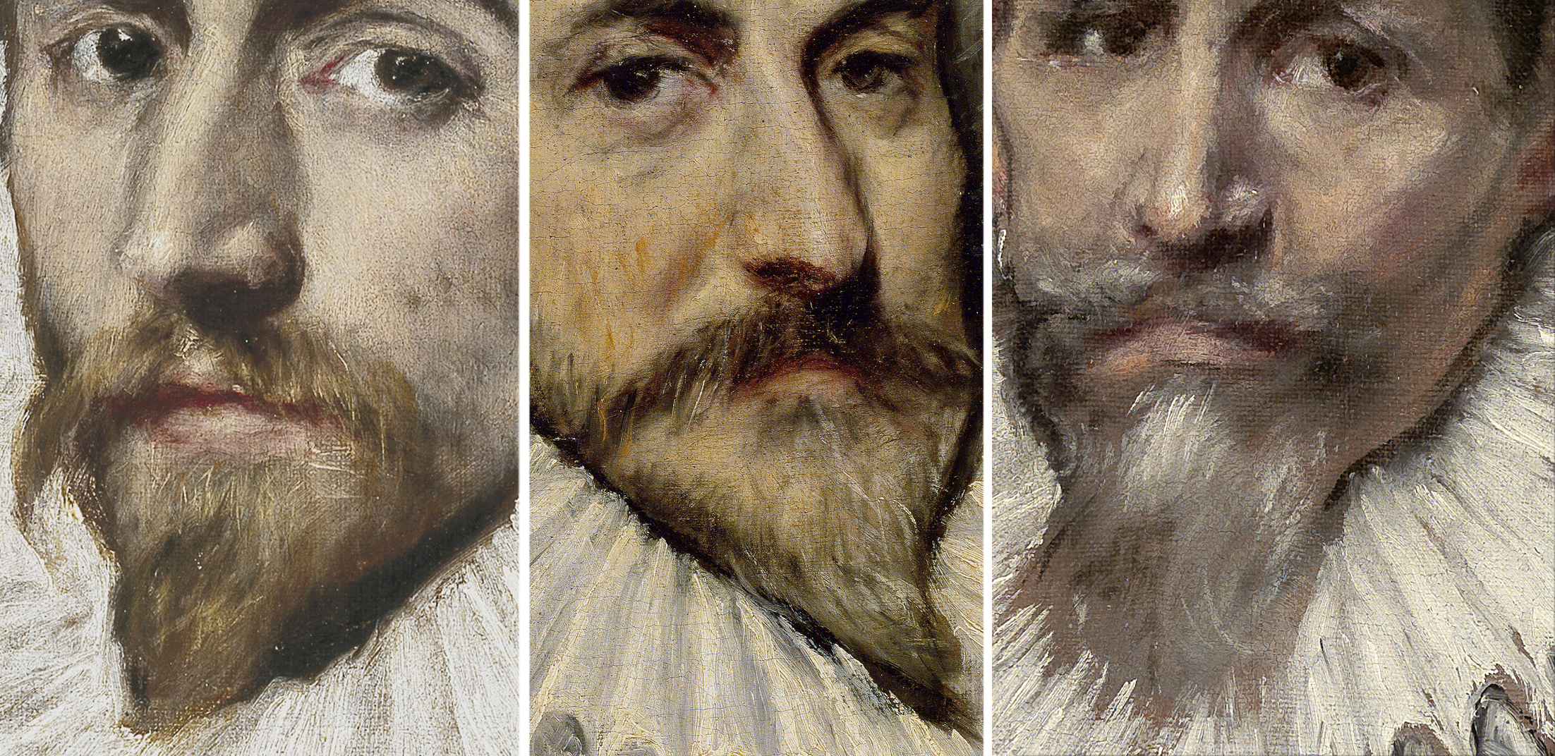 - Evolución de la técnica de El Greco. De izquierda a derecha: Retrato de un caballero joven (detalle) ca. 1595-1600 Retrato de un caballero(detalle) ca. 1600 Jerónimos de Cevallos(detalle) ca. 1610-14 Madrid, Museo Nacional del Prado.