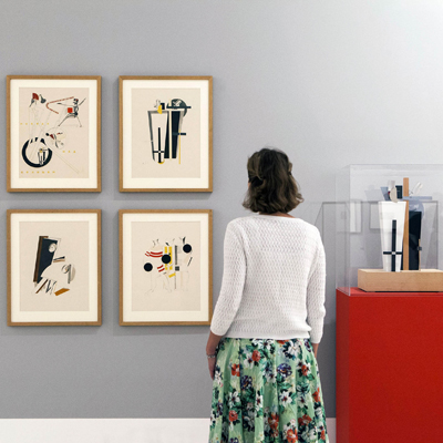 Incluye una reproducción del Prounenraum que Lissitzky creó en 1923 para la Gran Exposición de Arte de Berlín, un proyecto que trasladaba a las tres dimensiones sus investigaciones sobre pintura fusionadas con sus estudios en torno a la arquitectura. Se trata de un espacio de escasos metros que materializa la expresión tridimensional del concepto espacial de los prounen y ofrece al visitante una experiencia visual en la que participa activamente, pues condensa la búsqueda de lo que las vanguardias utópicas de la década de 1920 llamaron “la experiencia de la totalidad”, en la que arte y vida se fusionaban.