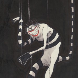Fue entonces cuando Burton comenzó a crear sus propias criaturas de fantasía, muchas con rasgos a medio camino entre lo animal y lo humano y capaces de suscitar la risa y el miedo.