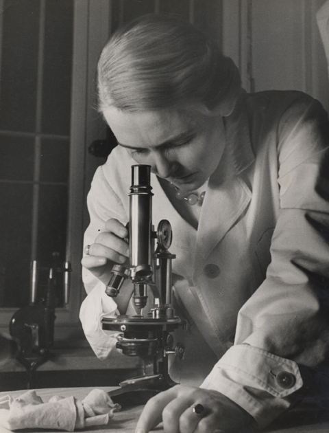- Elisabeth Hase. Untitled (woman with microscope), 1934