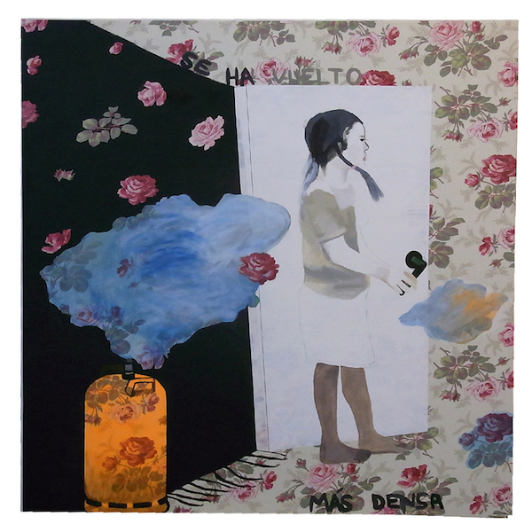Al margen de sus propuestas de arte público, quizá sea la pintura el medio en que más ha trabajado nuestra fichada, siguiendo procedimientos que tienen mucho de intuitivos y libres y que parten de motivos de inspiración cotidianos y de sus reflexiones sobre ellos. Nos recuerda, además, que no dejemos de fijarnos en sus títulos, en ellos sí que no interviene el azar. Cuando desarrolla acciones o trabaja con objetos, las cosas cambian: La pintura siempre me ha acompañado. El proceso se ha ido definiendo con el tiempo: un elemento fijo, tal como “sobre un lienzo estampado de flores”. Un impulso o imagen como punto de partida: por ejemplo, un encuentro con “un señor que busca un sótano para sus pertenencias, aunque sea con humedades”; empiezo el cuadro o dibujo sin saber cómo acabará. A veces es un proceso largo y difícil. Lo hago así porque me gusta que el resultado me sorprenda, dar lugar al no control. Hasta la fecha sigo pintando una figuración que oscila entre la simplificación y cierto realismo, según la fase. Me gusta escribir en los cuadros, los títulos son muy importantes, jamás un S/T.