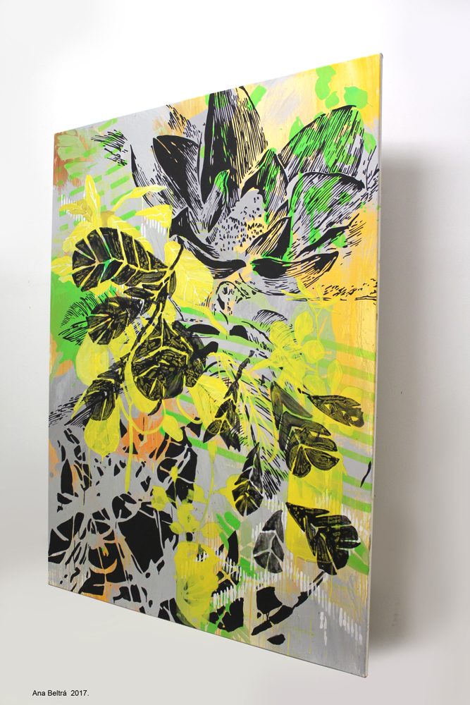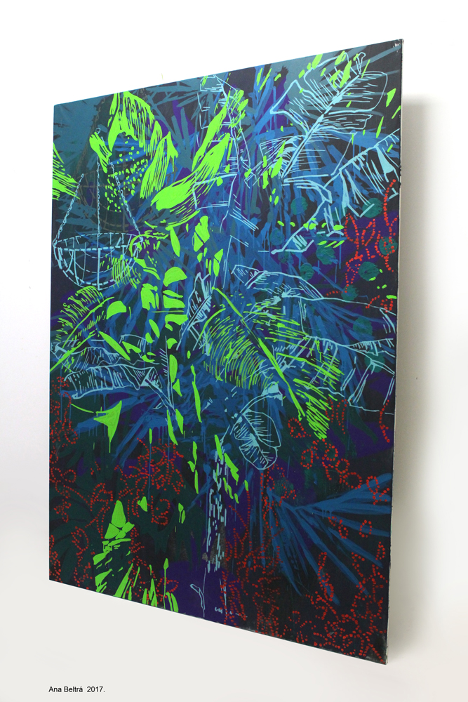 Currículum al margen, podemos decir que en la producción de Ana encontramos naturalezas coloristas que son selvas y no paisajes plácidos, vegetaciones vibrantes que le sirven para indagar sobre cuestiones humanas, como la posición del individuo frente a la sociedad y la aceptación de lo que escapa al orden. Explica que capta la naturaleza abultada, la marabunta de verdor, la sensación de fragilidad y supervivencia ante la inmensidad apabullante de una naturaleza sin control. Sensaciones vibrantes y majestuosas ante la banda sonora que despliega un bosque, la profunda reflexión a la que se somete una persona en un entorno natural y virgen (…). Mi trabajo siempre ha girado en torno a la naturaleza, la soledad, el caos y la entropía. Ítems que han trazado mi línea argumental para entender el posicionamiento de uno y el mundo y aceptar el caos como forma de ser y defenderlo como paradigma estético dentro del arte.