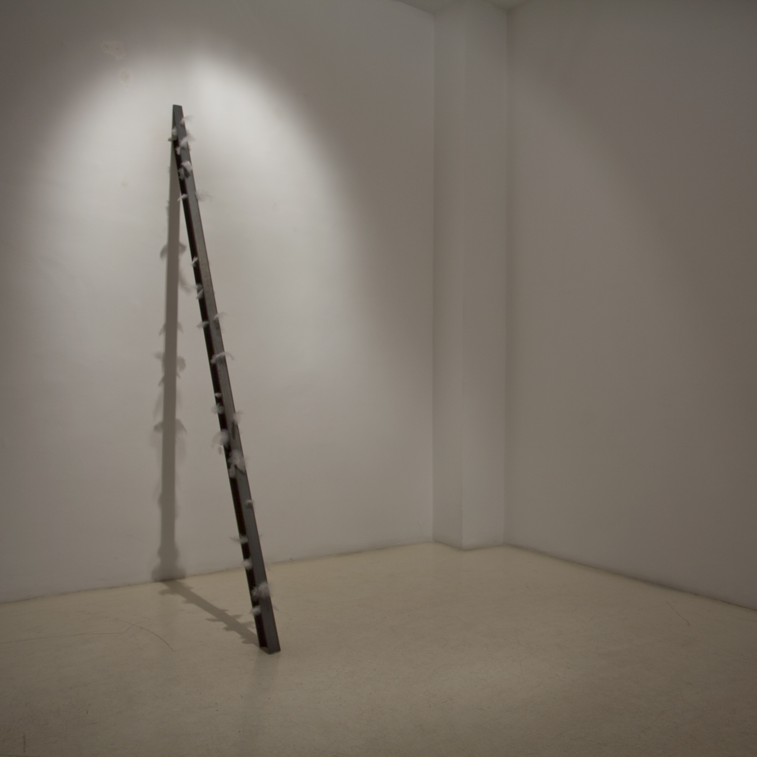 El suelo de madera en “forma de espiga” muestra el dibujo de una hoja realizado en cianotipia. La técnica utilizada para realizar el dibujo es la misma que Anna Atkins utilizó en 1843 para resolver las dificultades de realizar dibujos precisos de especies científicas. Las tablas del parqué colocadas sobre el pavimento con un ángulo de 45º recuerdan precisamente a una espiga y, a la vez, se asemejan al propio dibujo realizado sobre la superficie de la tablilla. En estos interiores, la realidad vegetal representada no es más profunda que el revestimiento de las paredes.