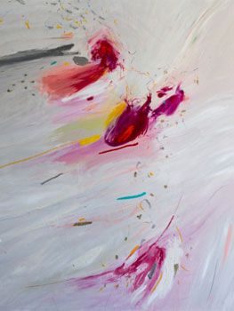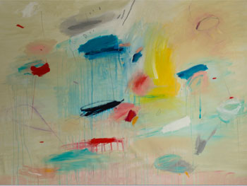 La búsqueda del equilibrio ha sido uno de los motores de su producción: dibujos y pinturas que concibe como vehículos expresivos, como contenedores de sus reflexiones. Sus lienzos han ido aumentando paulatinamente su tamaño, hasta alcanzar dimensiones murales, con la finalidad fundamental de que un formato pequeño no supusiera una traba a la hora, precisamente, de expresarse sin barreras.