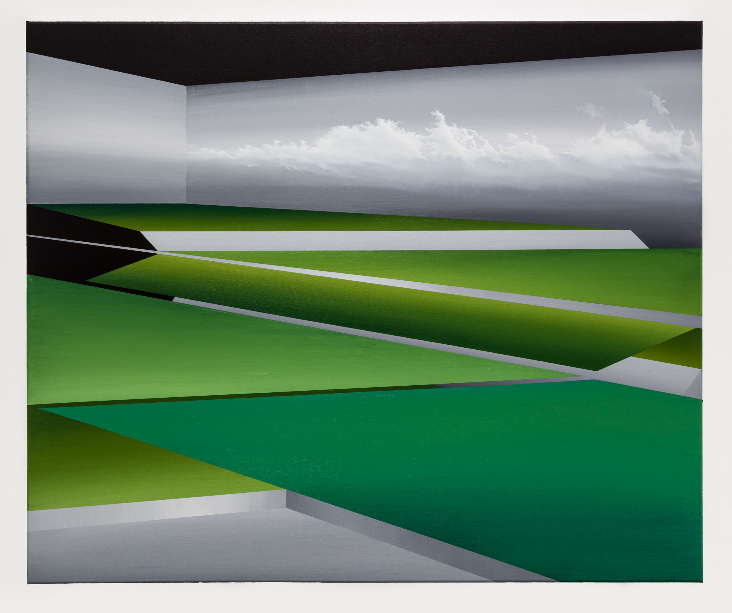 Hemos preguntado a Fernando por los artistas por los que se ha dejado influir, y entre ellos menciona a algunas figuras fundamentales del Land Art, pero no sólo: Tomo referentes de la historia del arte reciente como Gerhard Richter y Luc Tuymans y, fuera de la pintura, Richard Long o Robert Smithson. La Escuela de Leipzig ha influido a muchos pintores de mi generación. Para el proyecto que estoy realizando actualmente me interesan mucho artistas como Julie Mehretu o Benjamin Edwards, que logran introducir varios niveles de lecturas mediante distintas formas gráficas en sus paisajes. Hablando de Mehretu, por cierto, la veremos en cuestión de días en el nuevo Centro Botín de Santander.