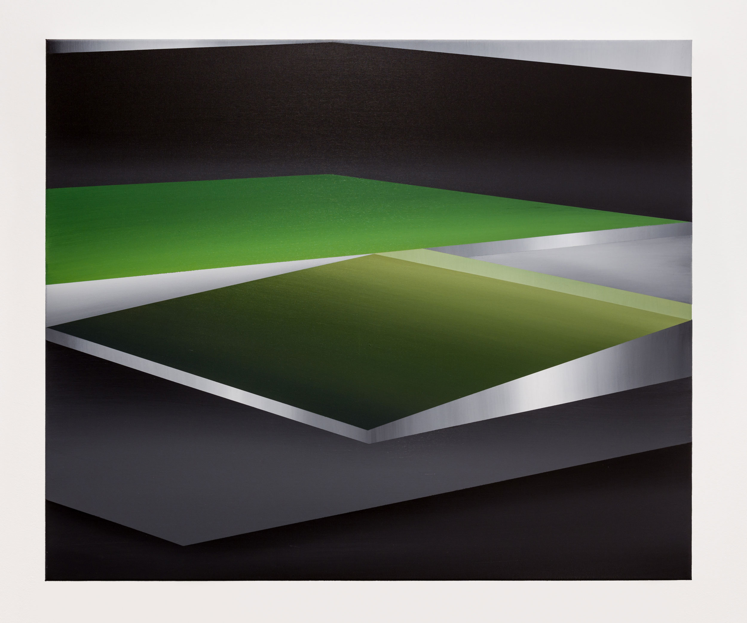 Actualmente, la experimentación me está llevando progresivamente a abandonar el archivo fotográfico y me estoy centrando en la obtención de imágenes a través de programas informáticos de simulación espacial. Me interesa mucho el diálogo que se fuerza al traducir una imagen técnica a una imagen pintada.