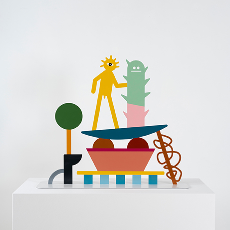 Como avanzábamos al principio, son diversas las técnicas que viene empleando Francesch, desde las dos a las tres dimensiones, sin dejar nunca de lado el medio pictórico en el que comenzó, en el que despliega colores luminosos y define las formas con precisión a través de gruesas líneas negras: En todos estos años he trabajado y experimentado con muchos formatos. Empecé con la pintura, más tarde la complementé con serigrafía, y estampé un gran número de ediciones. Años más tarde surgió la posibilidad, con una comisaria, de hacer una instalación y durante varios años estuve elaborando algunas instalaciones e intervenciones, todas con un carácter parecido, entre lo lúdico y la sublimación de objetos populares. En paralelo, siempre he desarrollado proyectos de diseño con los que sigo trabajando y ahora mismo estoy de nuevo en la pintura, y haciendo unas piezas de hierro policromado entre la pintura y la escultura.