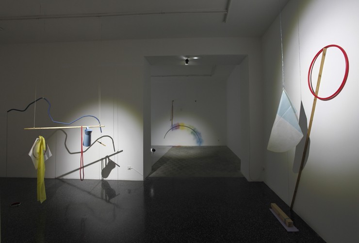 Lo lúdico y lo teatral son esenciales en esta exhibición, titulada “Limbs describe curves”. En el caso de los bailarines, sus cuerpos, a través del movimiento convertido en ejercicio mecánico, describen espacios; los objetos, separados de ellos mediante un telón, se dirigen al espectador, a modo de coro; y el uso de sombras y luces parece animar siluetas suspendidas. La tramoya escenográfica queda al descubierto y compone, en sí misma, el eje de esta obra, que introduce en un espacio expositivo (cubo blanco, aséptico) el espacio teatral (tradicionalmente asociado al cubo negro), y, por tanto, la ficción.