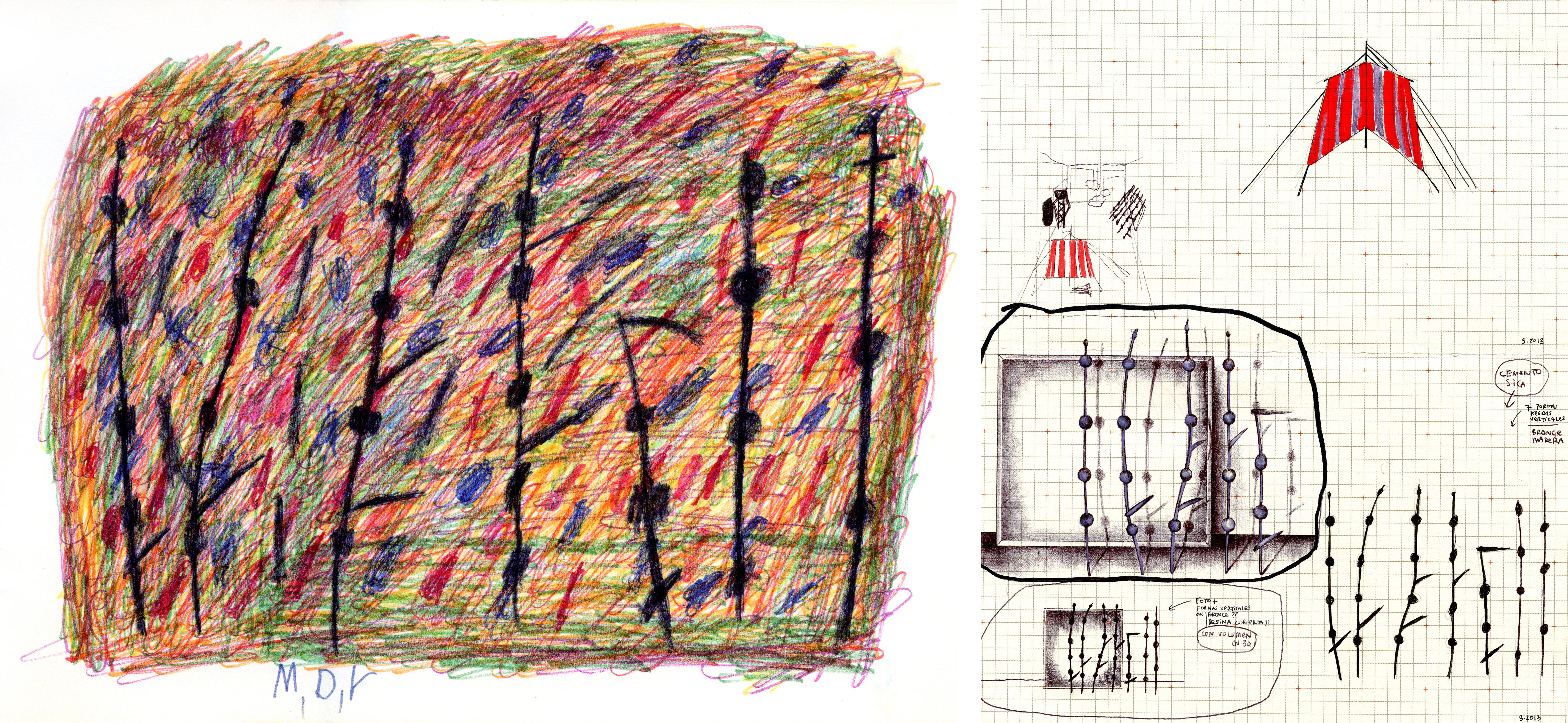En sus exposiciones siempre encontraréis las huellas de su proceso creativo, en forma de apuntes, fotografías de prensa, dibujos y acuarelas, pues Paula no disocia ese trabajo inicial de las obras finales, entendiendo el primero como parte de las segundas, parte determinante. Presentarnos ambos intensifica el significado y la carga dramática del conjunto y podríamos entender como paralelos ese afán por desvelarnos los pormenores de sus investigaciones artísticas y el de poner negro sobre blanco hechos oscuros de un pasado no revelado.