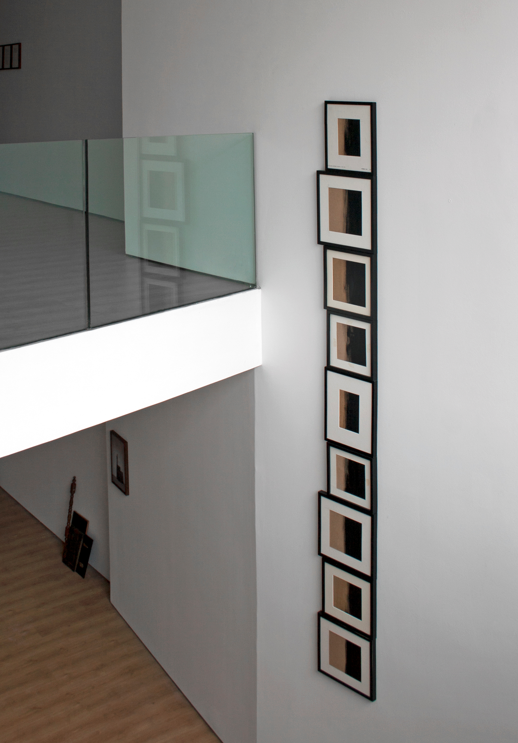 Líneas, vacíos y contrastes entre luces y sombras caracterizaban, en lo formal, las obras que formaron parte de esta exposición, que tuvo como punto de partida dos ideas precisamente literarias: la primera se encuentra ya en el título, porque en francés la expresión el espíritu de la escalera (l’esprit de l’escalier) designa a esa costumbre nuestra de encontrar las respuestas más ingeniosas y oportunas cuando ya es demasiado tarde para contestar, y la segunda invocaba a Odradek, un ser que os será familiar a los lectores de Kafka y que tiene estrecha relación con el espíritu anterior: se trata de una criatura imaginaria, desubicada allí donde se encuentre, que simplemente existe, sin función. También podemos considerar que nadie más completo que Odradek.