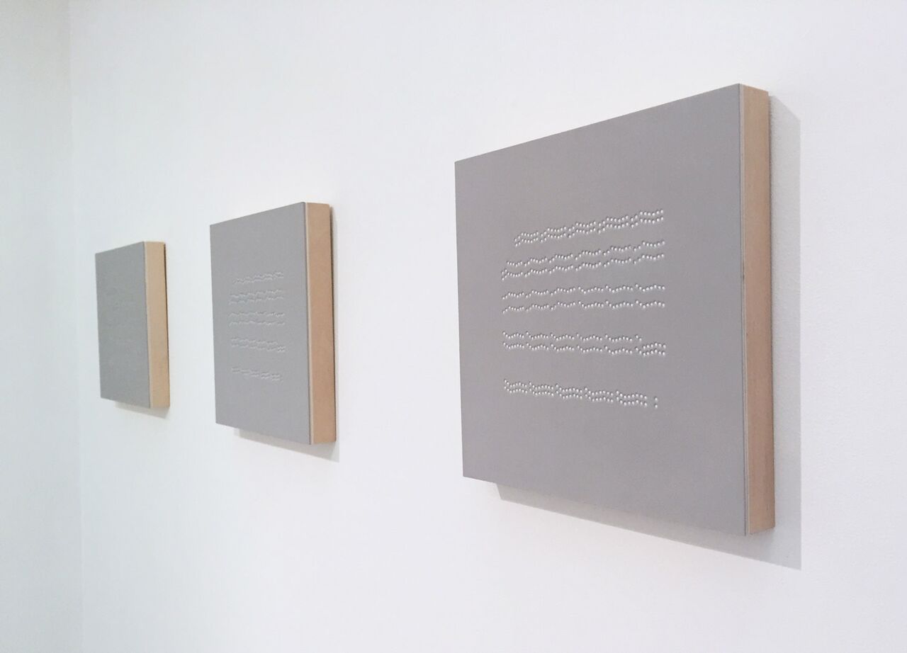 Sus trabajos tienen títulos incuestionablemente melodiosos: Études, Neumas, 100 metros de Do mayor, Notages… y en ellos observamos gestos rítmicos repetitivos y circulares que van trazando líneas continuas, dejando huellas en la superficie pictórica; traducciones gráficas de notas musicales en las que estas, que no son sino modos de escribir el tiempo, son descontextualizadas con objetivos estéticos; música en pvc para dejar huella del tiempo en el espacio o melodías perforadas en distintos materiales.