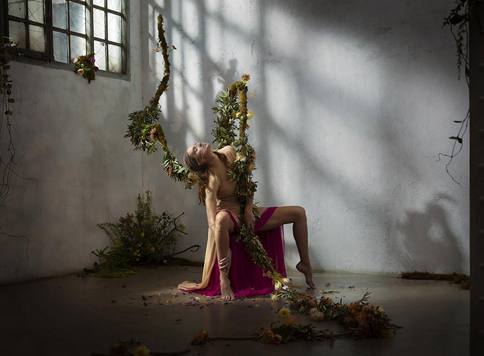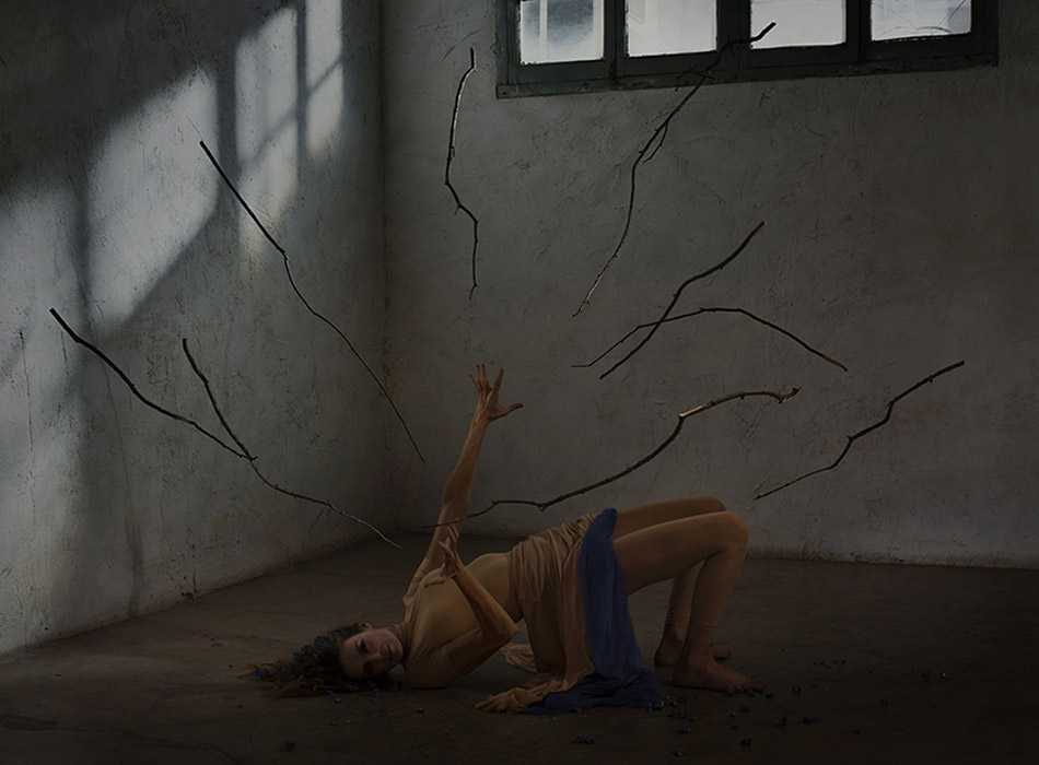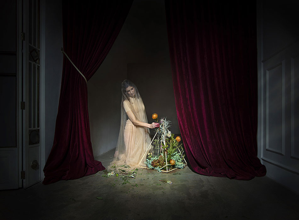 Rocío Verdejo es fotógrafa, se especializó en moda y creación artística y ha tomado las escenografías teatrales y cinematográficas como referencia fundamental en su obra. Sus imágenes, que desprenden delicadeza y sofisticación, exploran sensaciones y miedos universales a través de figuras habitualmente femeninas. En una primera mirada ofrecen sobre todo belleza, pero en una segunda contemplación surge el drama o la tragicomedia: las dualidades entre vida y muerte, realidad y deseo, reflejadas en cuerpos en tensión o sin energía, en huesos o cenizas portadas por los vivos o en espejos que no devuelven lo que ven.