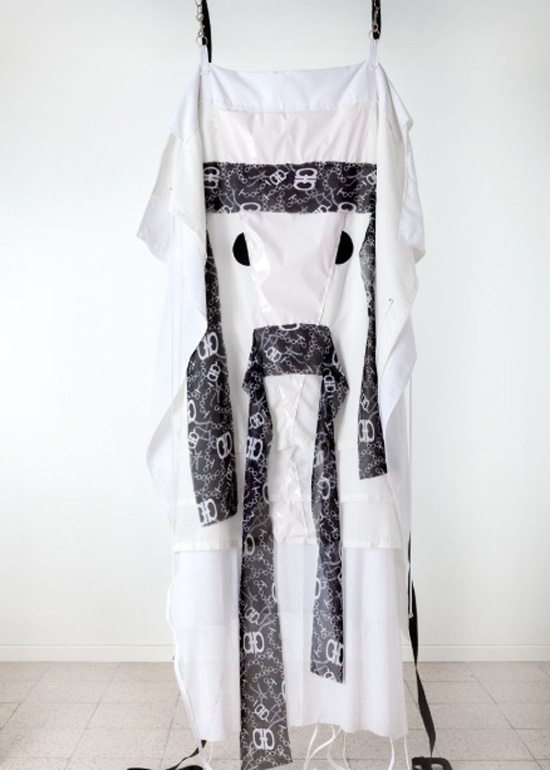 En su trabajo con esos materiales blandos y con procedimientos de la costura, se acordó de Mary Shelley y su “hijo”: Puedo verme como Mary Shelley creando a su criatura, Frankenstein. Mientras trabajo se repiten en mi cabeza estas frases como mantras: la pintura es piel, el esqueleto es dibujo. La piel cubre, La tela cubre, La pintura cubre. Un cuerpo hecho de piel y huesos y un cuadro hecho de tela y tablas.