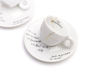 Espiritual y sanador; así es el mensaje que ha buscado transmitir Yoko Ono en el juego de tazas que ha diseñado para la Illy Art Collection. Tienen una particularidad: han sido previamente rotas, destrozadas, y después remendadas recubriendo sus grietas con oro.