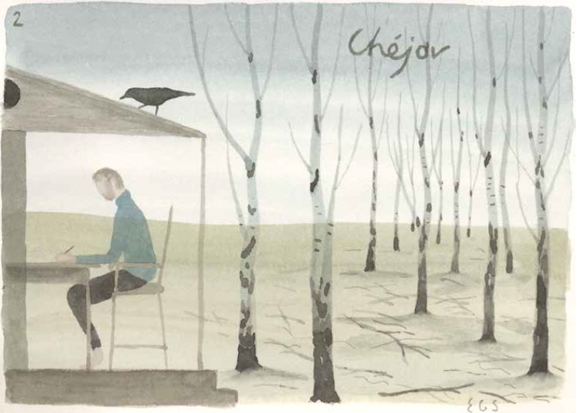 Bajo el título de “Tres rusos en el jardín”, podremos ver en Siboney una veintena de acuarelas dedicadas a las tres figuras referentes del artista en su formación, que son precisamente esos tres rusos a los que alude: Chéjov, Turgueniev y Tolstói.