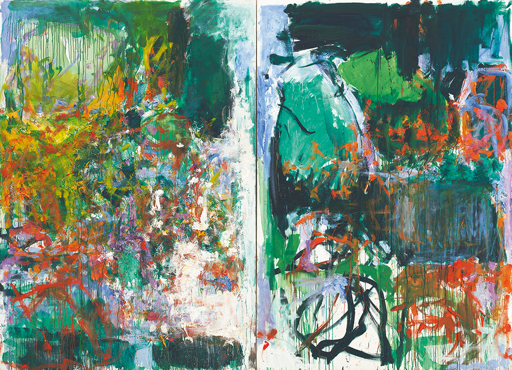 A la hora de mencionar las figuras fundamentales del Expresionismo abstracto pocos nombrarían a Joan Mitchell. Había nacido en Chicago en 1925, en los cuarenta se formó en el Smith College y en el Art Institute de su ciudad y también viajó por Europa, empapándose de la obra de los pre y postimpresionistas, sobre todo de Cézanne y Van Gogh, y también de Kandinsky.