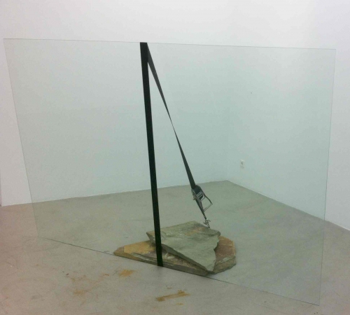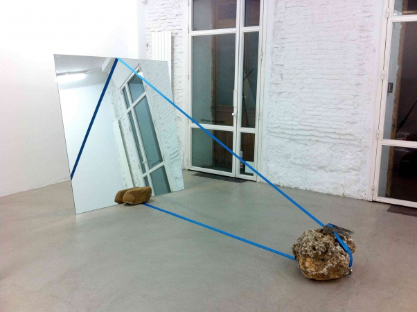 La pintura también tiene su sitio: el carácter pictórico de los cinchos que Dávila utiliza contrasta con las placas y despliega en la galería un conjunto de líneas referenciales que llaman nuestra atención sobre la delicada comunicación entre las superficies y sus correspondientes puntos de apoyo.