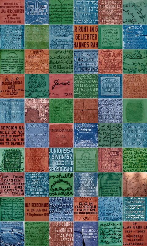 La exhibición, compuesta por cuarenta y cuatro fotos, se estructura en cuatro secciones: la ciudad española, el paisaje humano, los cementerios y las nuevas barriadas. Fijaos en los retratos, de composición clásica, de los habitantes de Larache en toda su dignidad, en los contrastes entre el paisaje urbano de la ciudad del antes y del ahora, excusa para la creación de juegos visuales, y en el díptico de mosaicos elaborados a partir de lápidas de tumbas que nos hablan de la convivencia de credos y culturas. Comisaría la exhibición Silvia Oviaño.