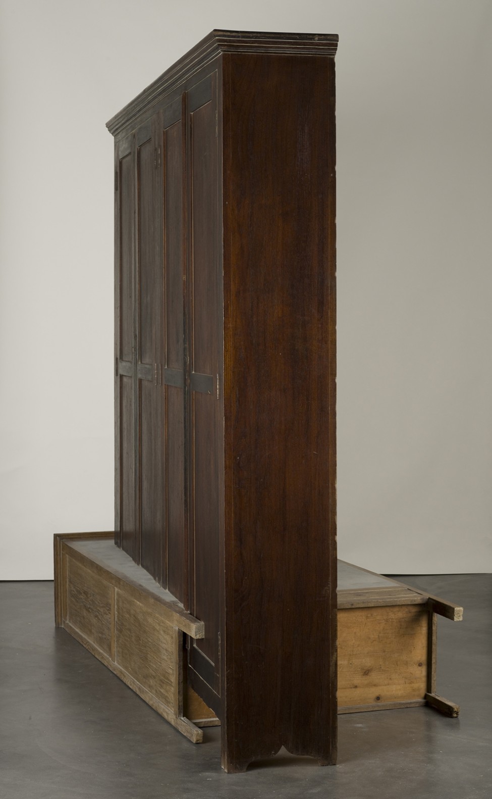 Junto a ellos veremos una amplia selección de obras que se muestran por vez primera unidas desde 1998: esculturas realizadas con puertas, mesas, armarios, sillas y otros muebles inutilizables alusivos a una cotidianidad doméstica interrumpida. Destacan en este sentido las instalaciones La Casa Viuda (1993-1995), Unland (1995-1998), Atrabiliarios (1992-2004) y la ya mencionada Plegaria muda, compuesta por mesas situadas unas encima de otras, con hierba creciendo en las superiores.